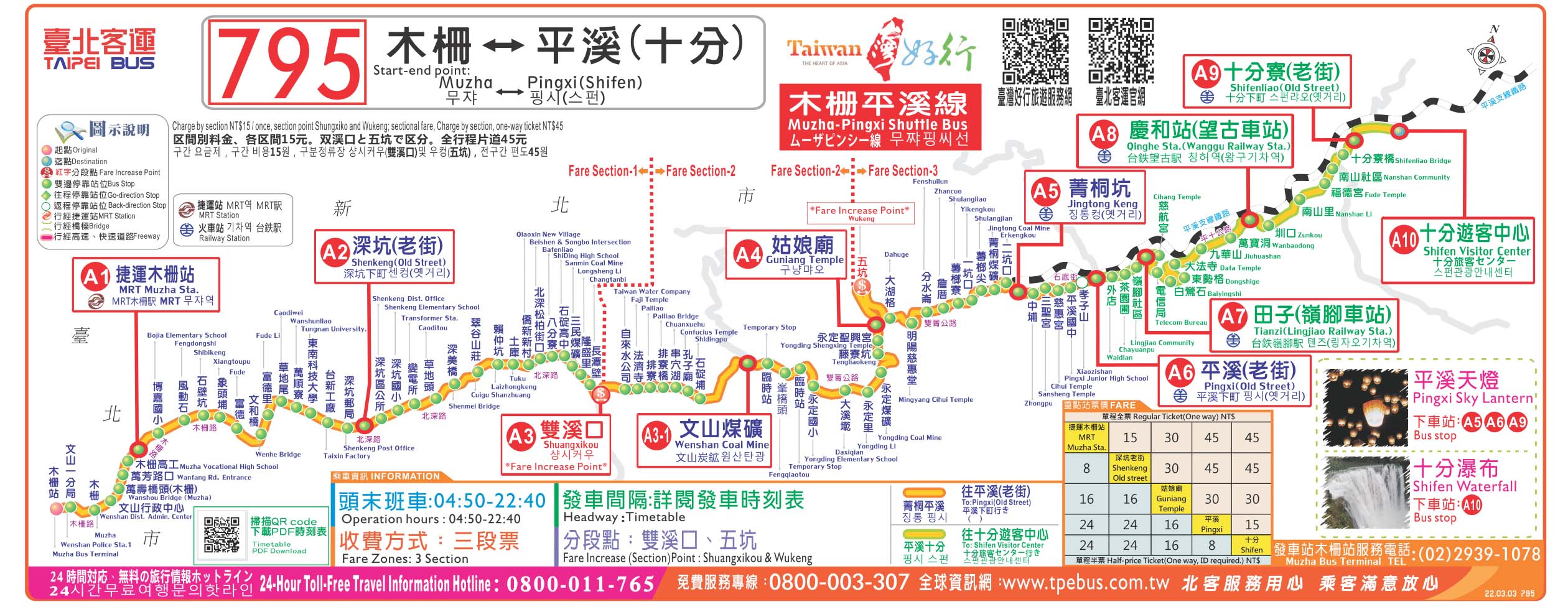 從「台灣好行-木柵平溪線」巴士站牌,搭乘台灣好行795。