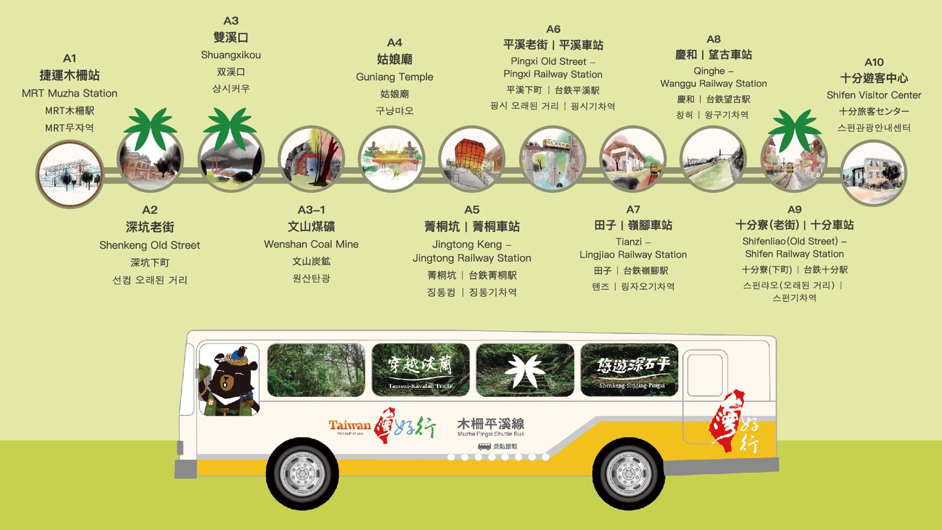 「捷運木柵站」為台灣好行木柵平溪線的第一站,串連台北捷運與台灣好行,是悠遊深石平...