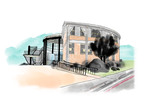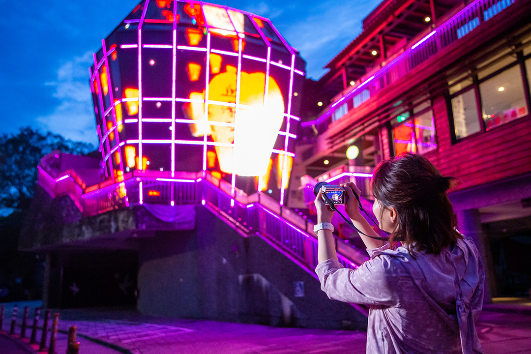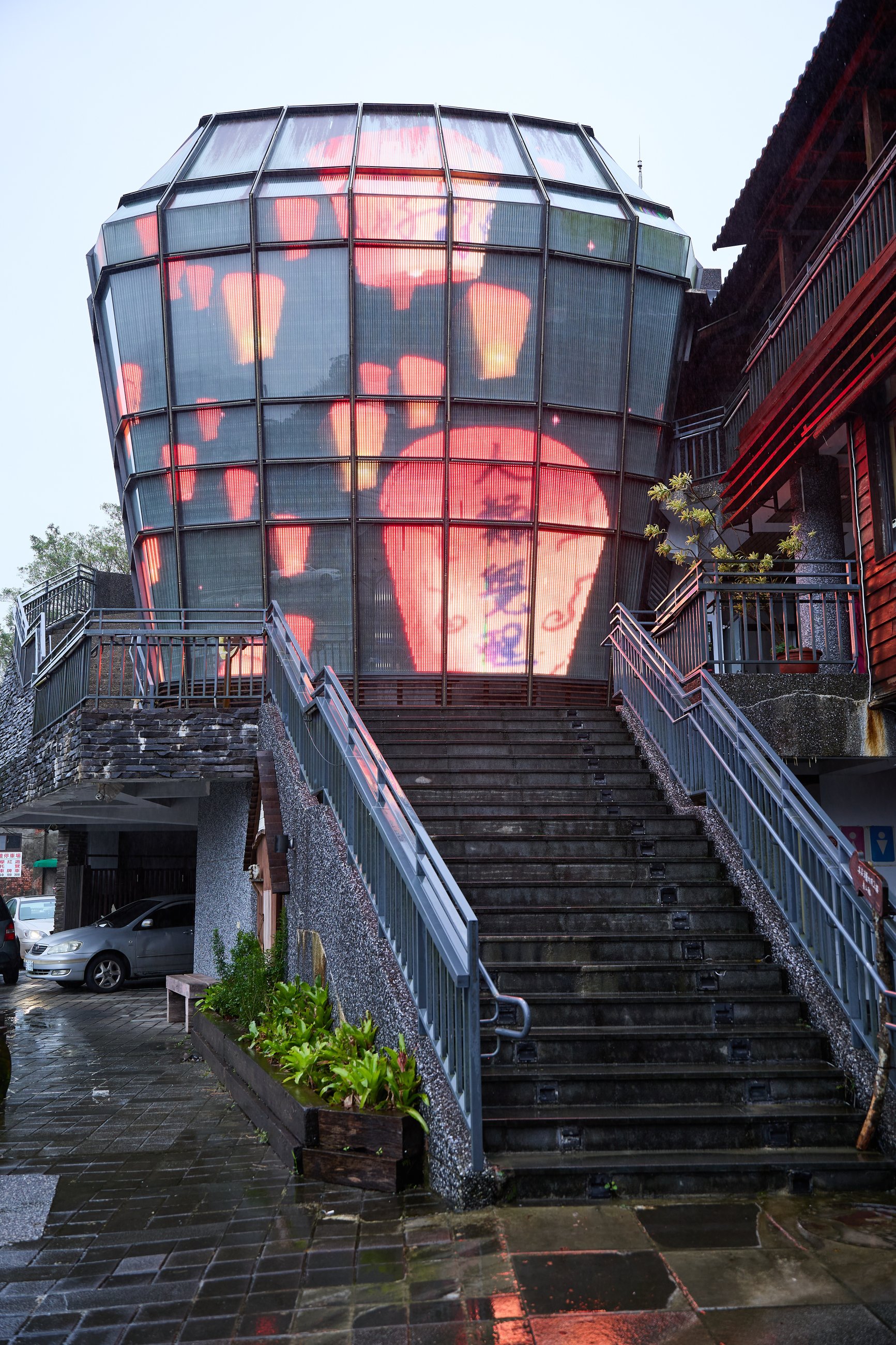 菁桐坑「菁桐電子天燈館」結合平溪天燈文化,建造9公尺高的天燈造型玻璃帷幕,以近2...