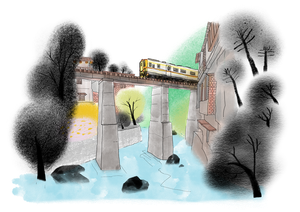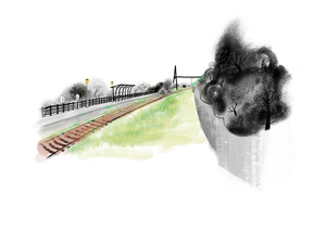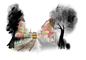 從田子站下車,進入山腳下的地方-嶺腳,嶺腳車站月台呈現獨特的108度的弧形,鄰近...